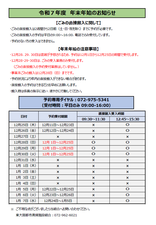 ごみの受入に関しては、通常通り行います。